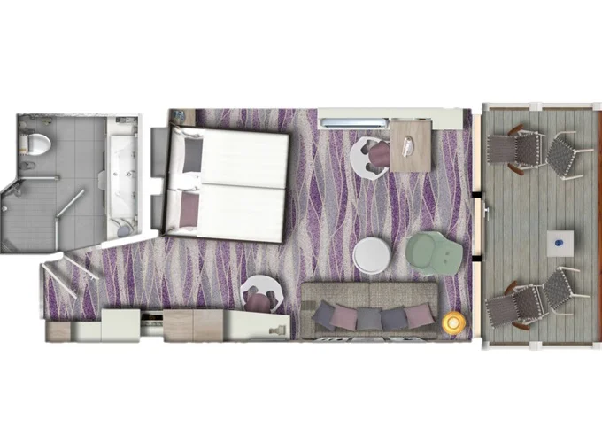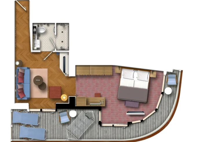 | JBAO - Junior Suite s balkónom 26 m² + balkón 7 m² so stolom. . paluba. Max 4 osoby. Výhody Junior Suite. | 15 147 € 5 049 € za osobu | ||